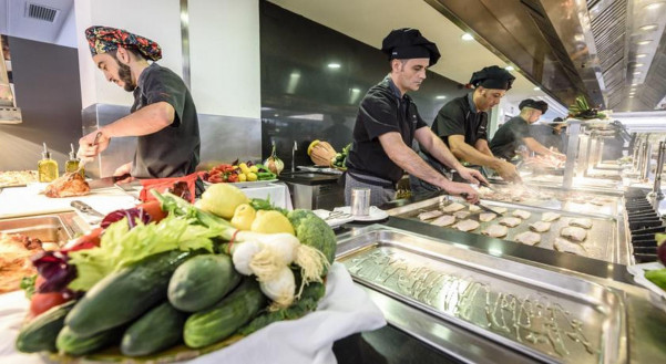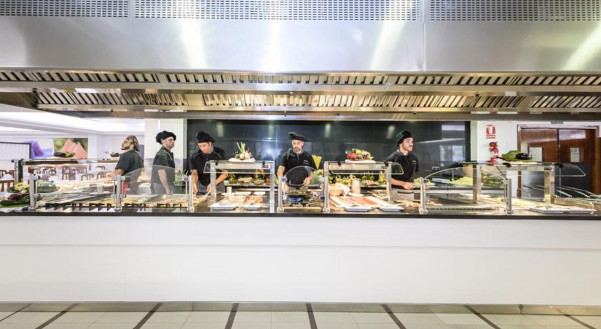 Gasten kunnen hun ontbijt, lunch en diner zelf samenstellen aan een buffet.